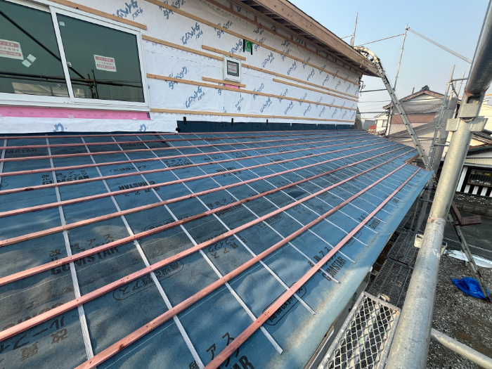 屋根の勾配を抑えて、軒先の水平ラインが美しいです。
