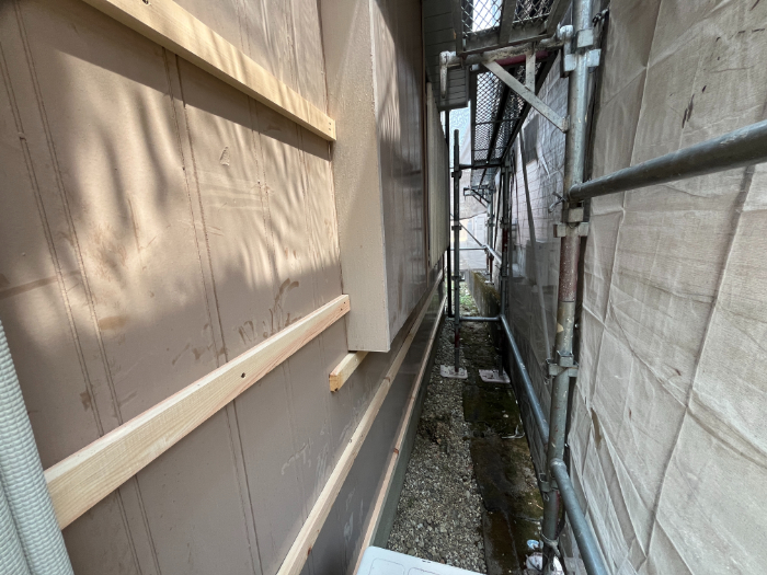 下地胴縁を既存の外壁の上から打ちます。