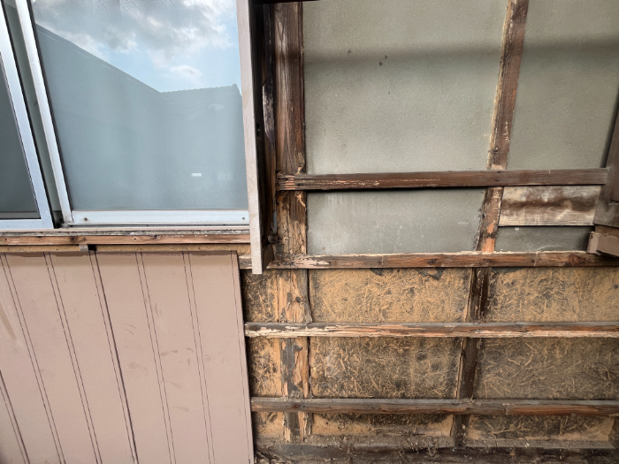 外壁をとめるための木材も白蟻の被害に