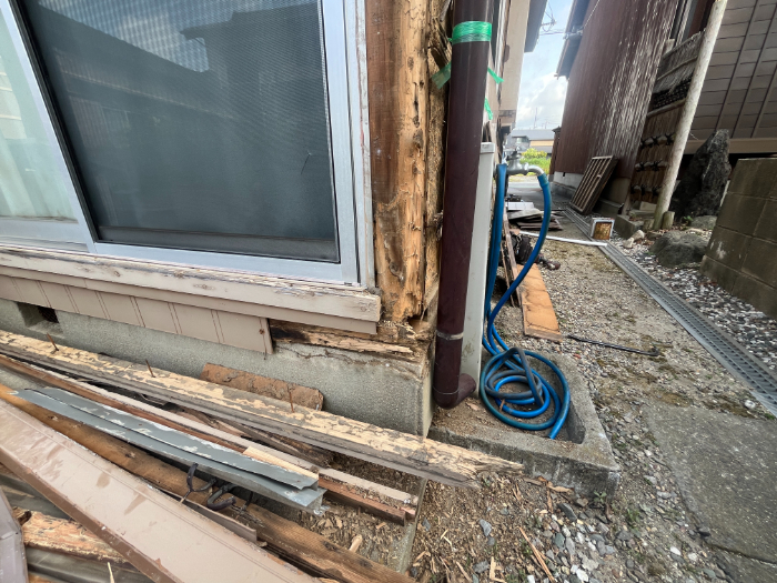 気になる箇所を発見したので、外壁を撤去すると、白蟻の被害に。