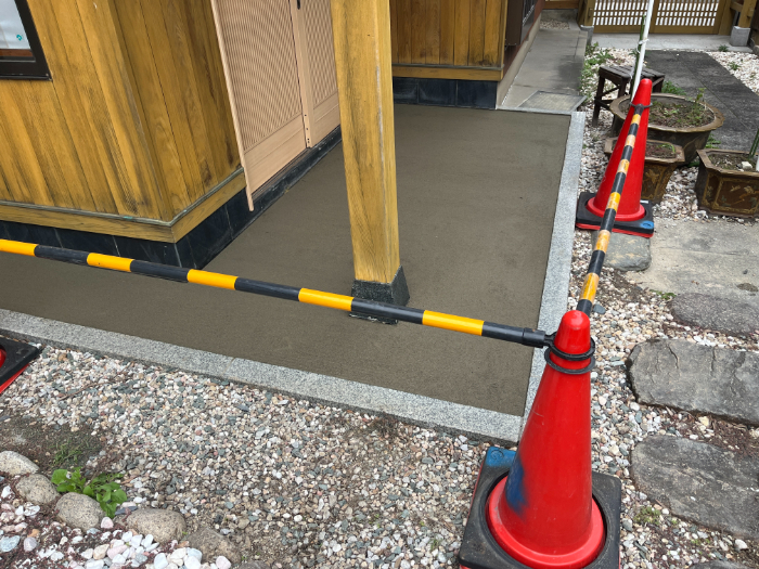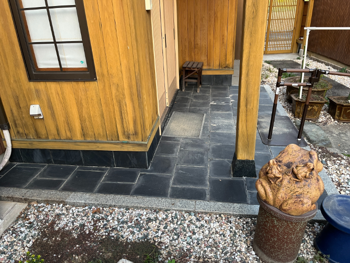 既存玄関の石張りが地盤沈下か、石が割れてしまいどうにかならないかと相談を受けました。