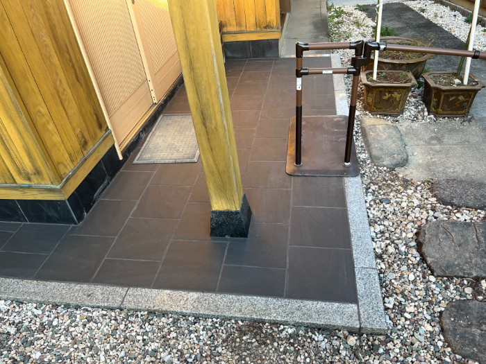 和風の玄関にもあるリアルな石目調のタイルにて施工させて頂きました。