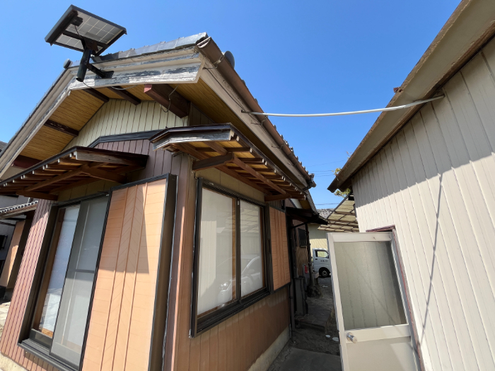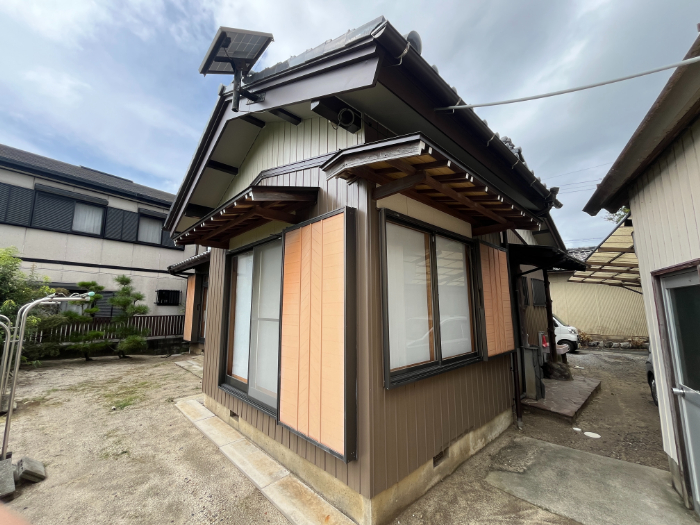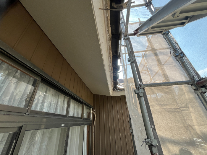軒天は、塗装のせっこう板で重ね張り、破風板、鼻隠しは板金で包みました。