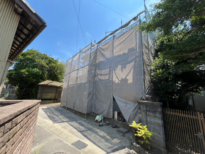 足場をかけて、いよいよ工事が始まります。